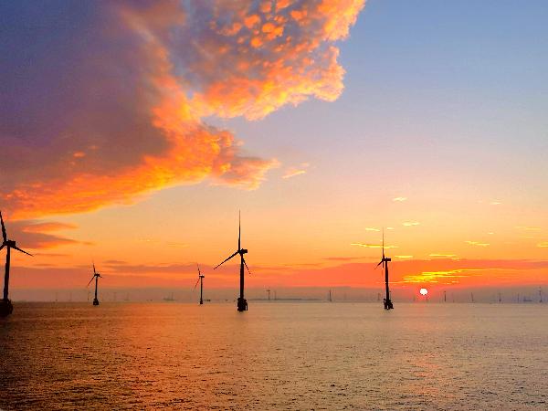 傍晚時(shí)分的海上風(fēng)機(jī)